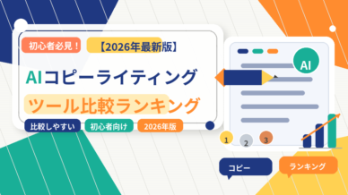 AIツール初心者必見!AIコピーライティングツール比較ランキング【2026年最新版】 AIコピーライティングツールの初心者向け比較と選び方を紹介。特徴や価格を表で比較し、よくある質問にも丁寧にお答えします。 2026.03.21AIツール
